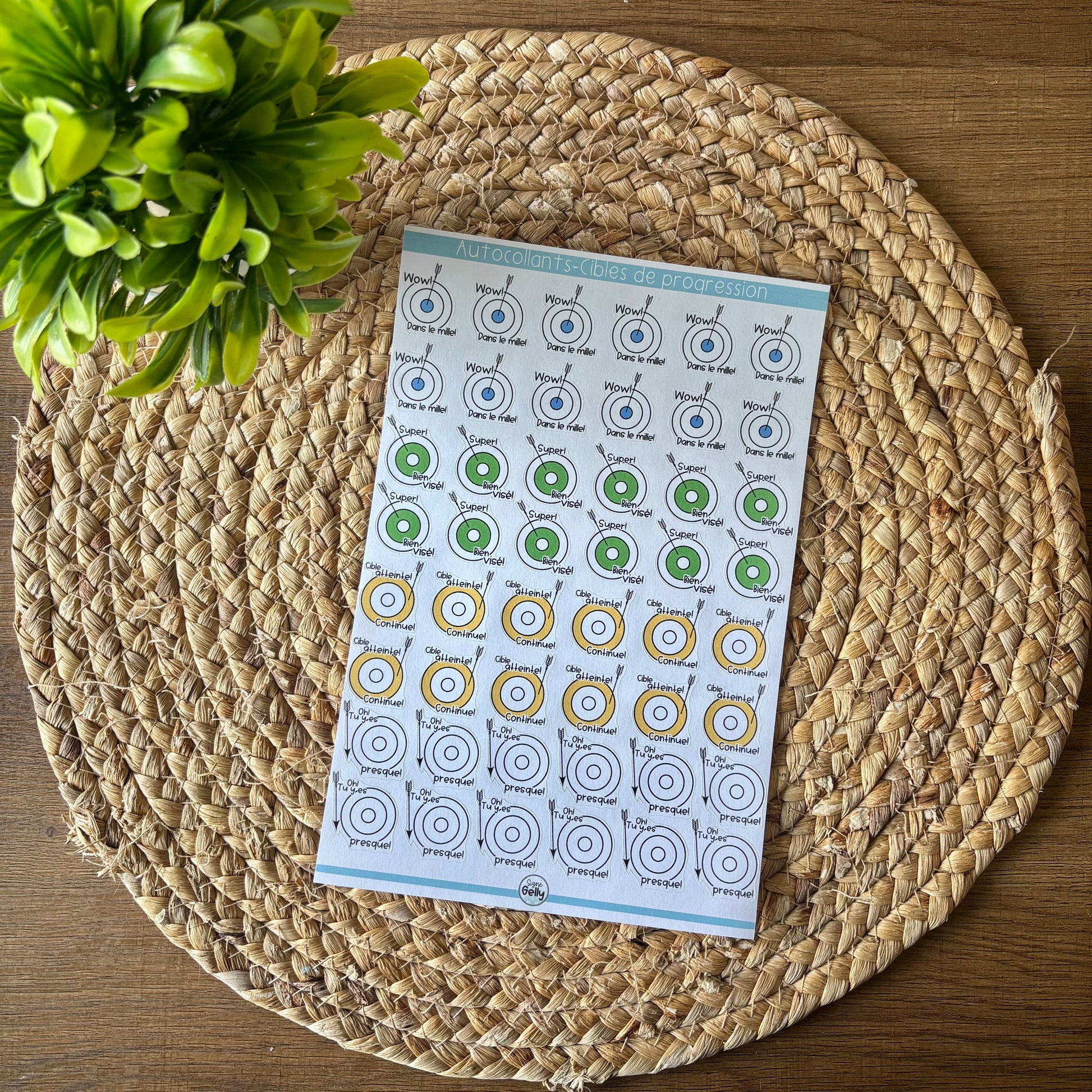 - 12 autocollants « Super! Bien visé!»
