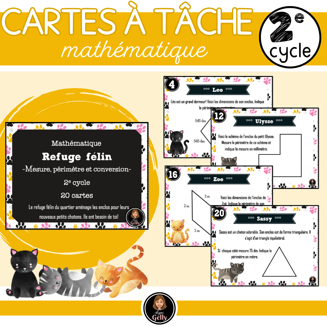 Il s'agit de cartes à tâches qui visent à travailler le périmètre, la mesure et la conversion de mesures.